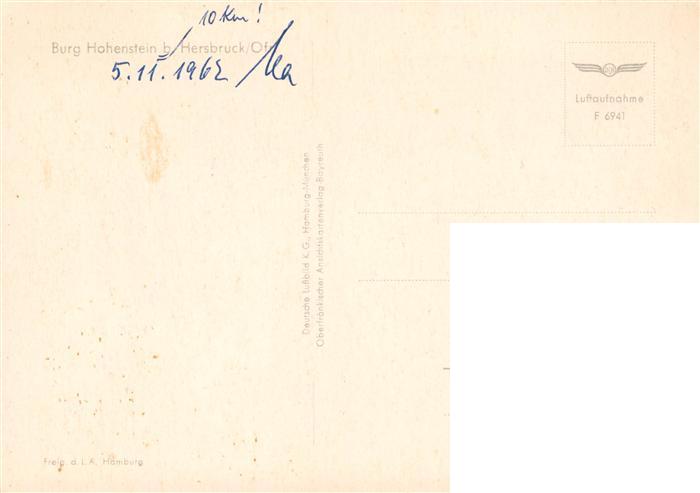 73924219 Hersbruck Bayern Burg Hohenstein Fliegeraufnahme postalisch nicht gelaufen Erhaltung siehe scans [FriedD77] Frie Katcode 11110009574132