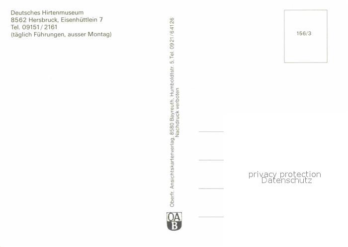 72913890 Hersbruck Bayern Deutsches Hirtenmuseum postalisch nicht gelaufen Erhaltung siehe scans [KathaD81] KatCode: 11110009574132