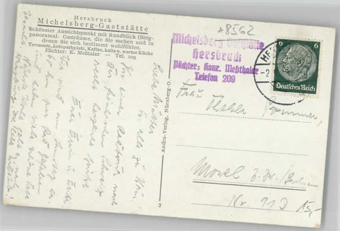 40233709 Hersbruck Bayern Gaststaette Michelsberg x 1940 postalisch gelaufen Alte Ansichtskarte Postkarte alte Postkarte Katcode 11110009574132