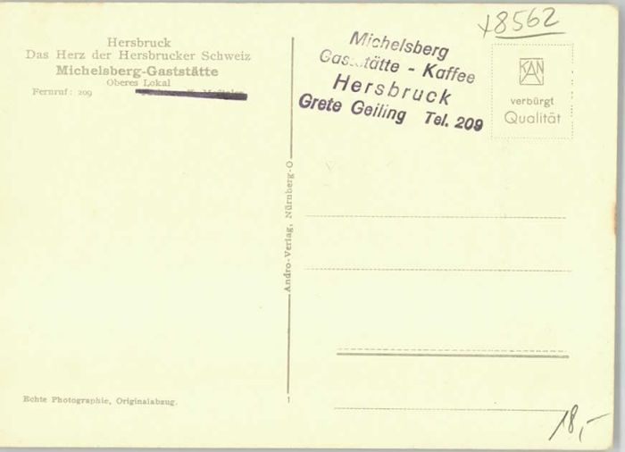 40234018 Hersbruck Bayern Michelsberg Gaststaette * 1940 postalisch nicht gelaufen Alte Ansichtskarte Postkarte Katcode 11110009574132