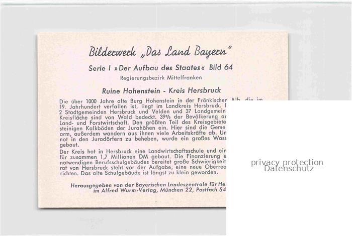 Hersbruck Bayern Ruine Hohenstein postalisch nicht gelaufen Werbekarte (keine Postkarte) Erhaltung siehe scans [WerneD78] Werbekarte (keine Postkarte) Wern Katcode 11110009574132