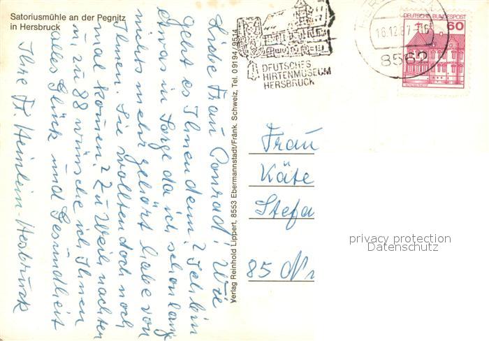 73744039 Hersbruck Bayern Satoriusmuehle a. d. Pegnitz postalisch gelaufen Erhaltung siehe scans [LiesaD40] alte Postkarte Lies Katcode 11110009574132