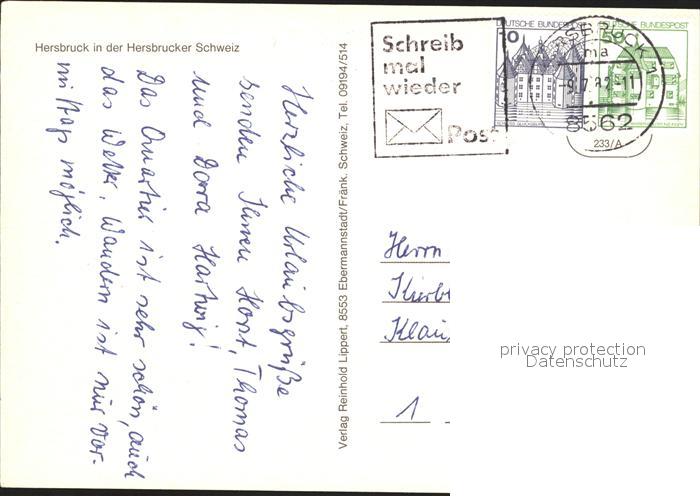 72184826 alte Postkarte Hersbruck Bayern Schweiz Kunstmuehle postalisch gelaufen Erhaltung siehe scans KatCode: 11110009574132