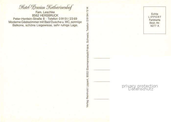 73087343 Hersbruck Hotel-Pension Katharinenhof postalisch nicht gelaufen Erhaltung siehe scans [PaolaD17] KatCode: 11110009574132