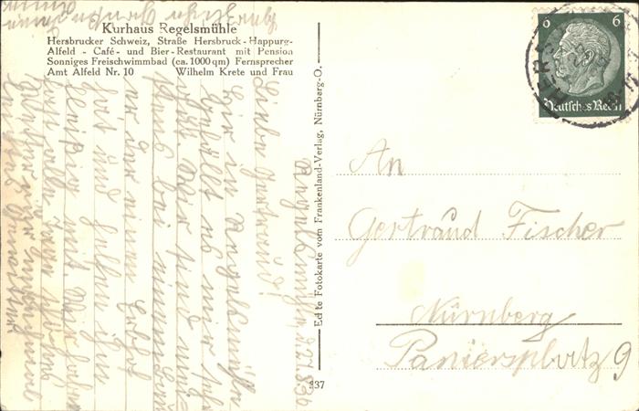 71060934 alte Postkarte Hersbruck Kurhaus Regelmuehle postalisch gelaufen KatCode: 11110009574132