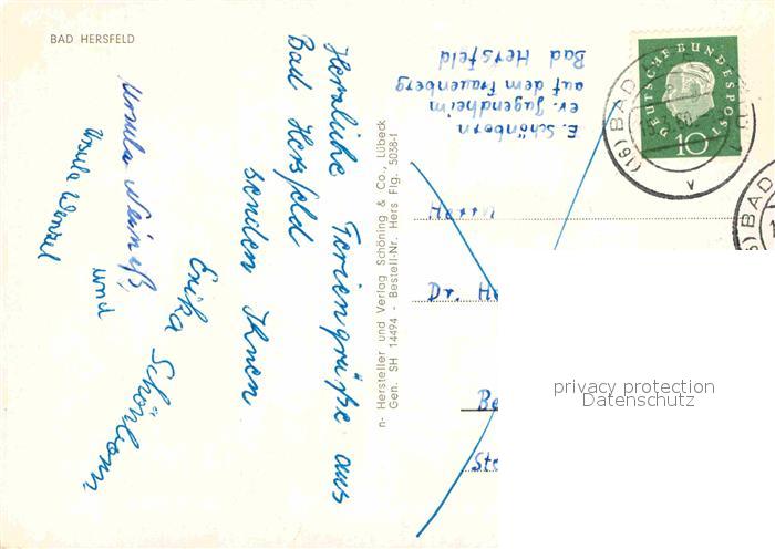 72777291 alte Postkarte Hersfeld Bad Kirche Ruine Luftaufnahme postalisch gelaufen Erhaltung siehe scans [KathaD81] KatCode: 11110006632002
