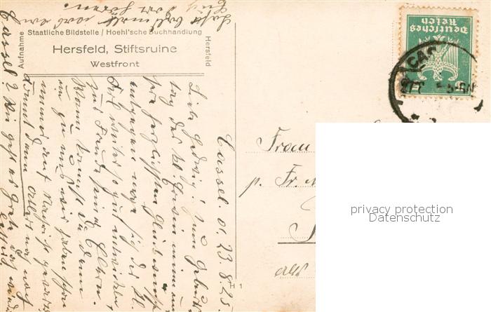 73817132 alte Postkarte Hersfeld Bad Stiftsruine postalisch gelaufen Erhaltung siehe scans [WerneD78] KatCode: 11110006632002