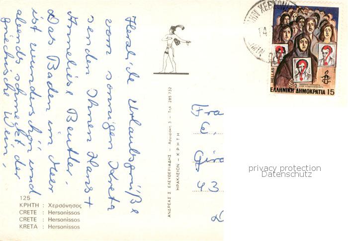 old postcard Hersonissos Hersonisos Crete Greece Panorama Kuestenort Hafen Hotel postalisch gelaufen Erhaltung siehe scans [FriedD77]
