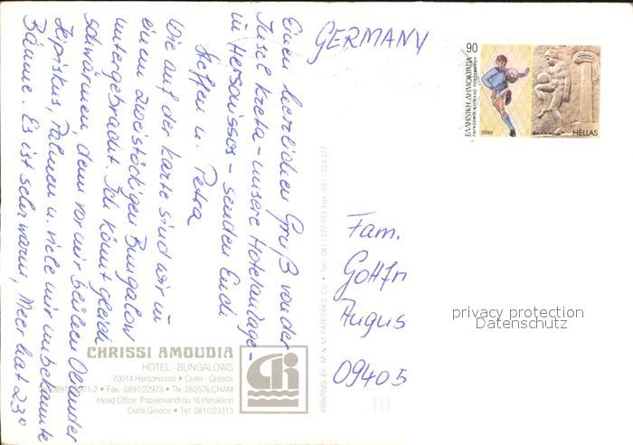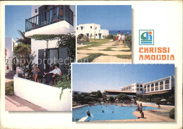 old postcard Hersonissos Kreta Chrissi Amoudia Hotel Bungalows Swimming Pool postalisch gelaufen Erhaltung siehe scans