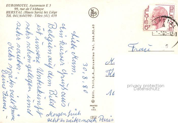 73108197 carte postale Herstal Euromotel postalisch gelaufen Erhaltung siehe scans [KathaD81] KatCode: 11070062000240
