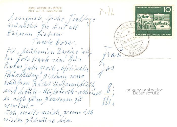 73873828 alte Postkarte Herstelle Weser Abtei Blick auf St Scholastika postalisch gelaufen Erhaltung siehe scans [WerneD78] KatCode: 11110005762008