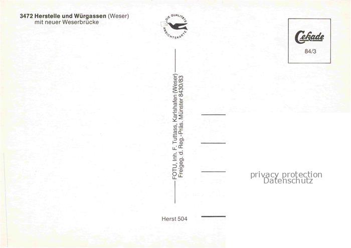74020639 Herstelle Weser und Wuergassen mit neuer Weserbruecke postalisch nicht gelaufen Fliegeraufnahme Erhaltung siehe scans [FriedD77] KatCode: 11110005762008
