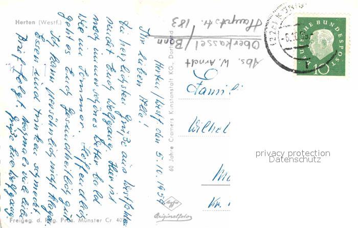 32657201 alte Postkarte Herten Westfalen Fliegeraufnahme postalisch gelaufen Erhaltung siehe scans [AndreD76] KatCode: 11110005562020