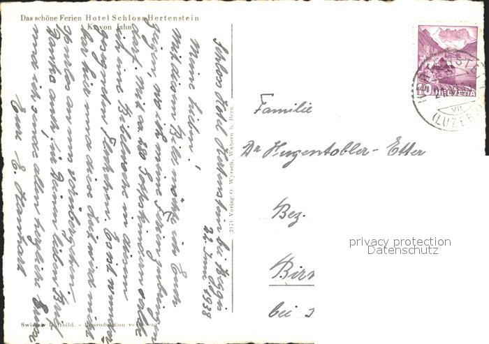 12031778 alte Postkarte Hertenstein LU Ferien Hotel Schloss Hertenstein Vierwaldstaettersee Fliegeraufnahme postalisch gelaufen Erhaltung siehe scans KatCode: 11470120385894
