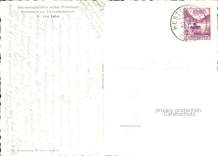 12031745 alte Postkarte Hertenstein LU Ferienhotel am Vierwaldstaettersee Terrasse Alpen postalisch gelaufen Erhaltung siehe scans KatCode: 11470120385894