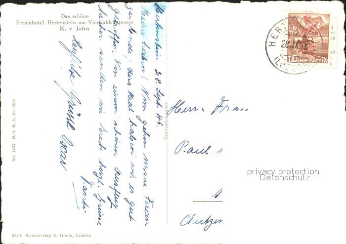 11648384 alte Postkarte Hertenstein LU Hotel Hertenstein Vierwaldstaettersee postalisch gelaufen Erhaltung siehe scans KatCode: 11470120385894
