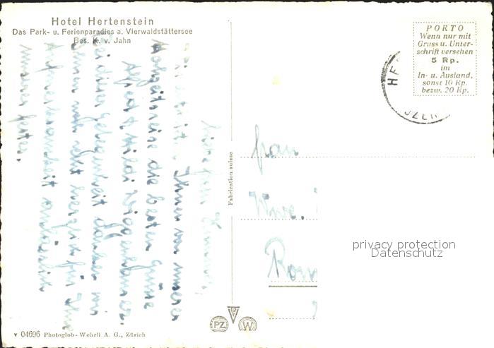 11648292 alte Postkarte Hertenstein LU Hotel Hertenstein Vierwaldstaettersee postalisch gelaufen Erhaltung siehe scans KatCode: 11470120385894