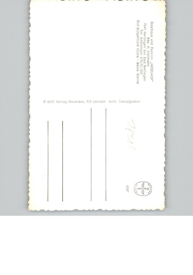 31176041 Hertingen Bad Bellingen Gasthaus-Pension Hebelhof postalisch nicht gelaufen KatCode: 11110008336006