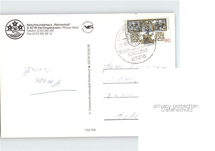 72360816 alte Postkarte Hertlingshausen Naturfreundehaus Rahnenhof postalisch gelaufen Erhaltung siehe scans KatCode: 11110007332007