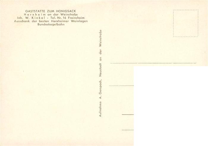 73890363 Herxheim Landau Pfalz Gaststaette zum Honigsack postalisch nicht gelaufen Erhaltung siehe scans [FriedD77] KatCode: 11110007337038