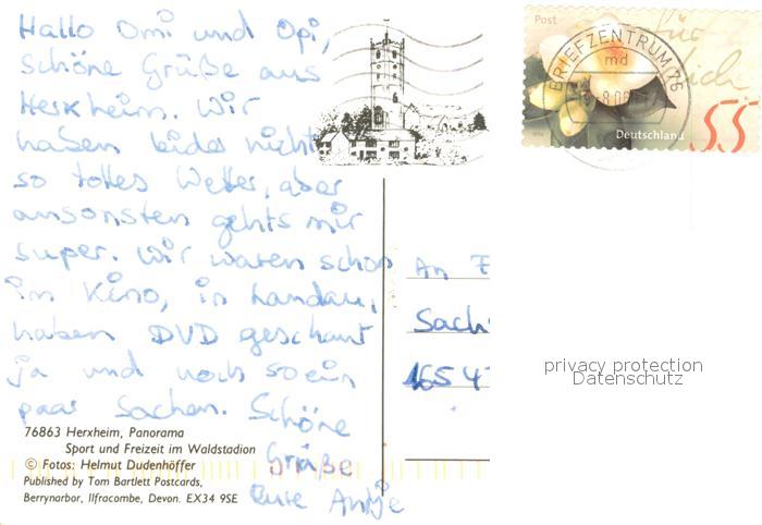73724026 alte Postkarte Herxheim Pfalz Panorama Sport und Freizeit im Waldstadion postalisch gelaufen Erhaltung siehe scans [WerneD78] KatCode: 11110007337038