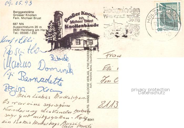 73677830 alte Postkarte Herzberg Harz Berggaststaette Grosser Knollen postalisch gelaufen Erhaltung siehe scans [WerneD78] KatCode: 11110003156009