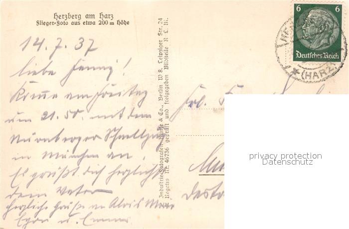 73321131 alte Postkarte Herzberg Harz Fliegeraufnahme postalisch gelaufen Erhaltung siehe scans [KathaD81] KatCode: 11110003156009