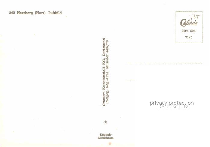 72664080 Herzberg Harz Fliegeraufnahme postalisch nicht gelaufen Erhaltung siehe scans [WerneD78] KatCode: 11110003156009