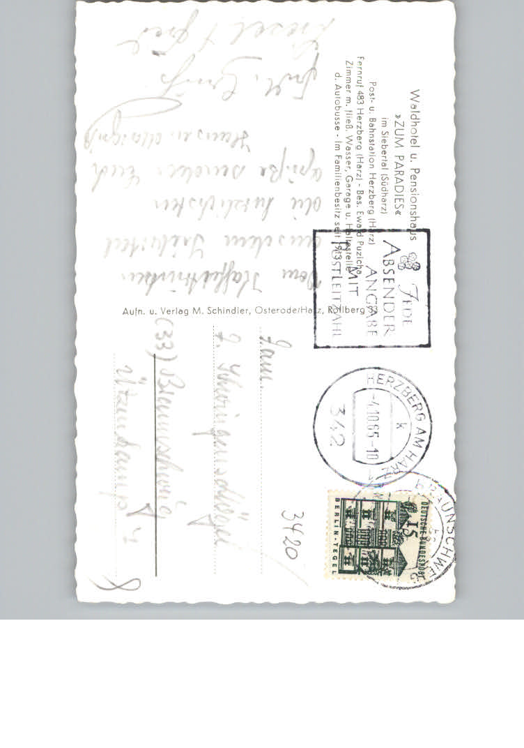 31174584 Herzberg Harz Hotel Zum Paradies postalisch nicht gelaufen KatCode: 11110003156009