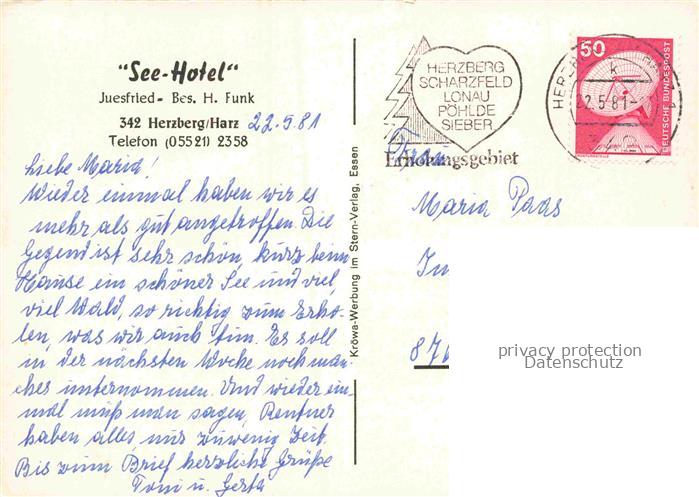 74136912 alte Postkarte Herzberg Harz Osterode Niedersachsen Seehotel Herzberg Terrasse Seepartie postalisch gelaufen Erhaltung siehe scans [WerneD78] KatCode: 11110003156009