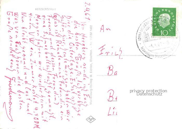 74156286 alte Postkarte Herzberg Harz Osterode Niedersachsen Teich Schlossberg Kirche Panorama Harz Gruss-aus Mehrbildkarte postalisch gelaufen Erhaltung siehe scans [Karloger] KatCode: 11110003156009