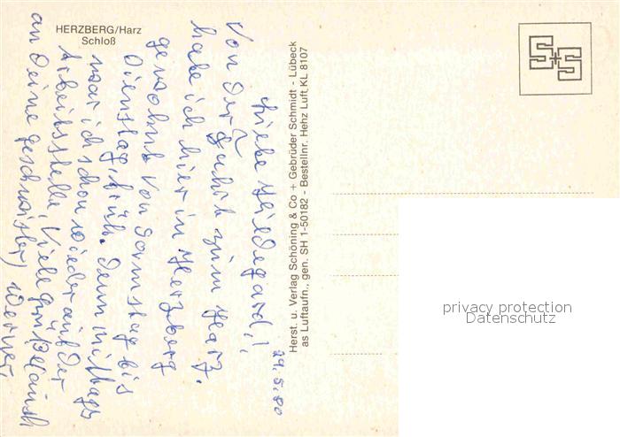 72846257 Herzberg Harz Schloss Fliegeraufnahme postalisch nicht gelaufen Erhaltung siehe scans [FriedD77] KatCode: 11110003156009
