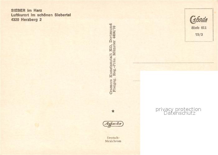 73321071 Herzberg Harz Sieber Fliegeraufnahme postalisch nicht gelaufen Erhaltung siehe scans [WerneD78] KatCode: 11110003156009