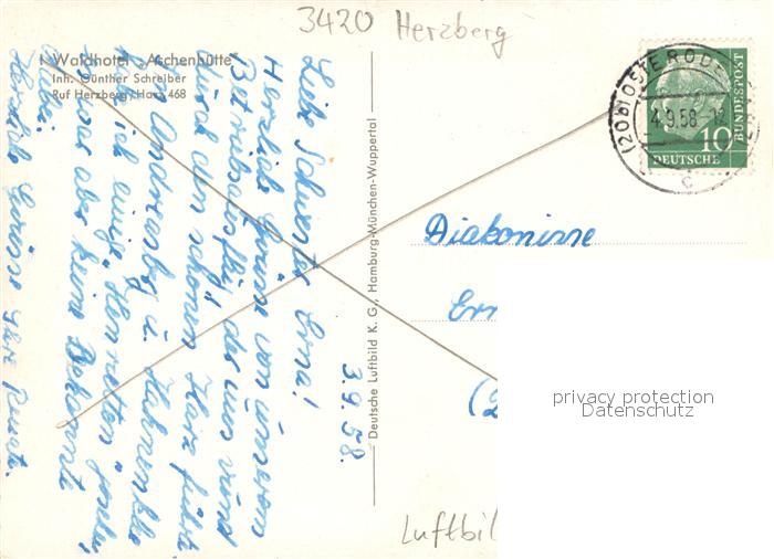 73693512 alte Postkarte Herzberg Harz Waldhotel Achenhuette postalisch gelaufen Erhaltung siehe scans [WerneD78] KatCode: 11110003156009