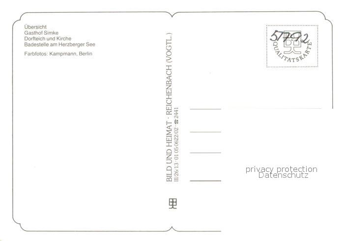 73739014 Herzberg Oder-Spree Panorama Gasthof Simke Dorfteich und Kirche Badestelle am Herzberger See postalisch nicht gelaufen Erhaltung siehe scans [WerneD78] KatCode: 11110012067426