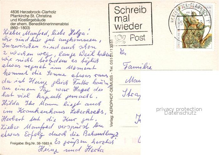 73663692 alte Postkarte Herzebrock-Clarholz Fliegeraufnahme Pfarrkirche St. Christina Klostergeb?ude postalisch gelaufen Erhaltung siehe scans [LiesaD40] KatCode: 11110005754020
