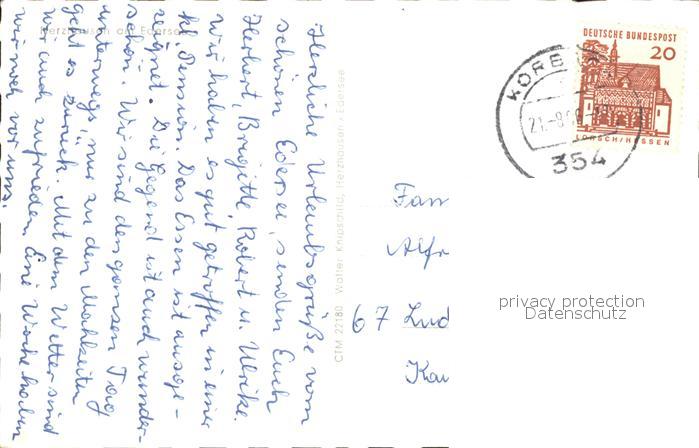 31714029 alte Postkarte Herzhausen Edersee postalisch gelaufen Erhaltung siehe scans KatCode: 11110006635009