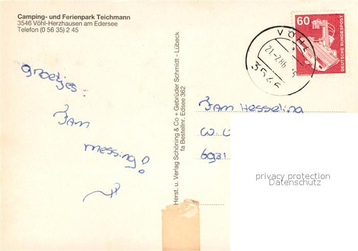 72929870 alte Postkarte Herzhausen Edersee Fliegeraufnahme Ferienpark Teichmann Minigolf Camping postalisch gelaufen Erhaltung siehe scans [WerneD78] KatCode: 11110006635009