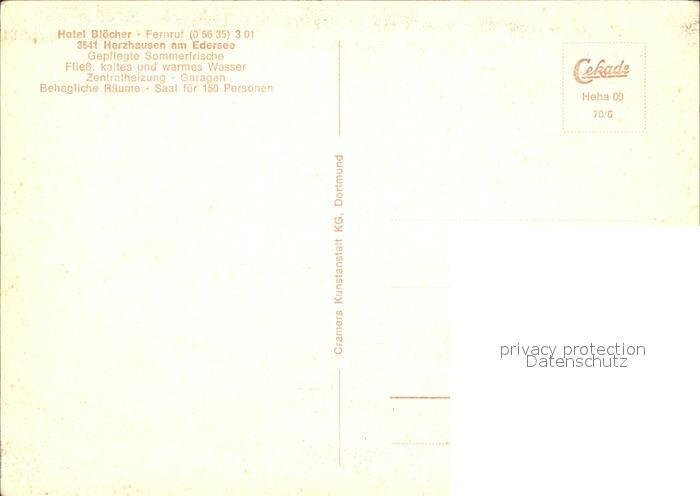 72307169 Herzhausen Edersee Hotel Bloecher postalisch nicht gelaufen Erhaltung siehe scans KatCode: 11110006635009