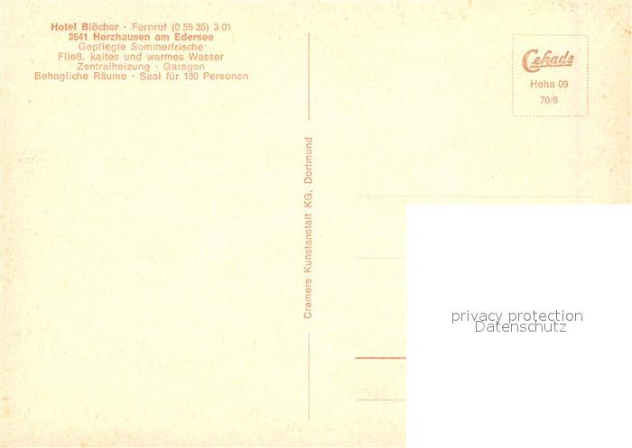 73181952 Herzhausen Edersee Hotel Bloecher postalisch nicht gelaufen Erhaltung siehe scans [FriedD77] KatCode: 11110006635009