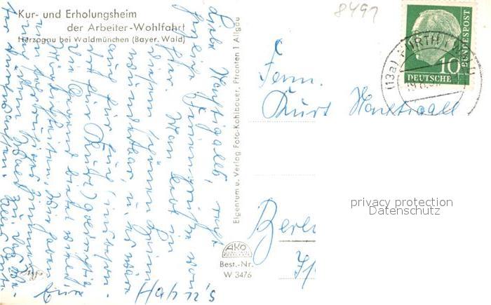 43342878 alte Postkarte Herzogau Waldmuenchen Kur und Erholungsheim der AWO postalisch gelaufen Erhaltung siehe scans [WerneD78] KatCode: 11110009372171