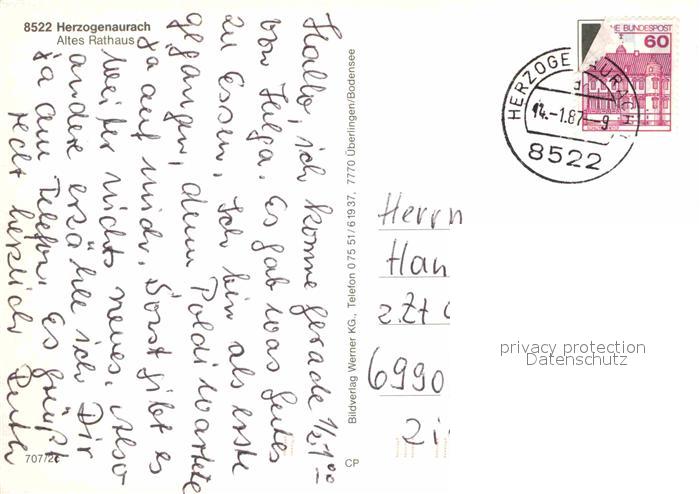 72777349 alte Postkarte Herzogenaurach Altes Rathaus postalisch gelaufen Erhaltung siehe scans [KathaD81] KatCode: 11110009572132