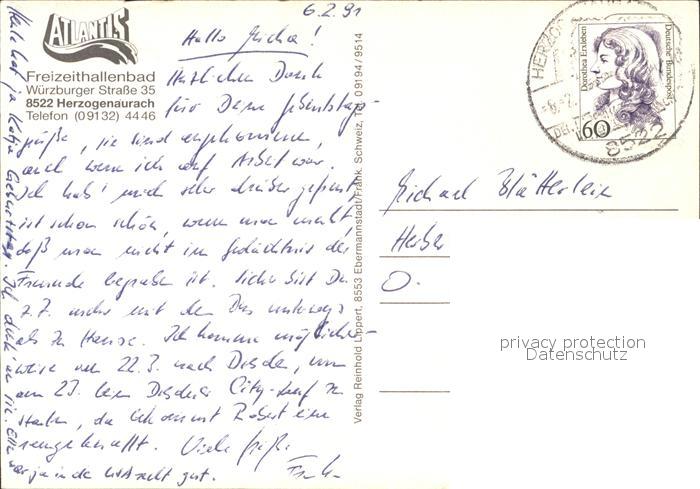 72406936 alte Postkarte Herzogenaurach Atlantis Freizeithallenbad postalisch gelaufen Erhaltung siehe scans KatCode: 11110009572132