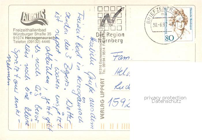73666388 alte Postkarte Herzogenaurach Atlantis Hallenbad postalisch gelaufen Erhaltung siehe scans [LiesaD40] KatCode: 11110009572132