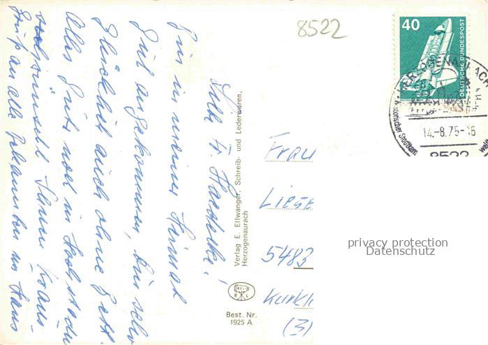 74049835 alte Postkarte Herzogenaurach Bayern Motiv Stadtzentrum Turm Freibad Berufsschule postalisch gelaufen Erhaltung siehe scans [FriedD77] KatCode: 11110009572132