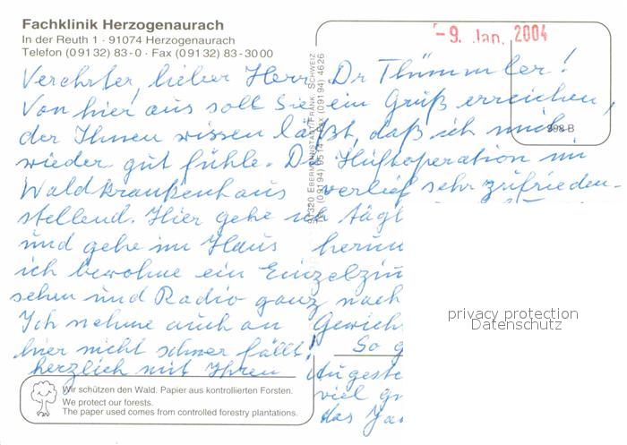 72752681 Herzogenaurach Fachklinik postalisch nicht gelaufen Erhaltung siehe scans [LiesaD40] KatCode: 11110009572132