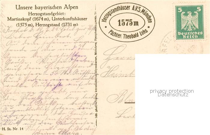73806567 alte Postkarte Herzogstand 1738m Kochel See Oberbayern Martinskopf Unterkunftshaeuser postalisch gelaufen Erhaltung siehe scans [WerneD78] KatCode: 11110009173133