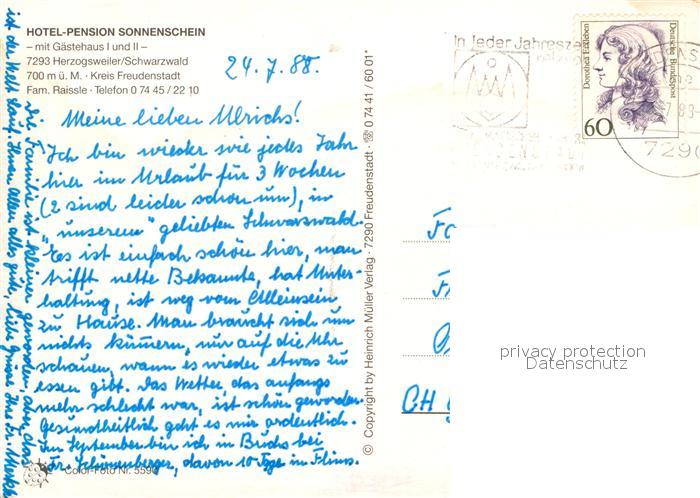 72947336 alte Postkarte Herzogsweiler Hotel Pension Sonnenschein mit Gaestehaus postalisch gelaufen Erhaltung siehe scans [WerneD78] KatCode: 11110008237054