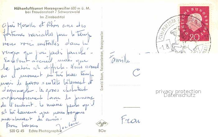 72776324 alte Postkarte Herzogsweiler Zinsbachtal postalisch gelaufen Erhaltung siehe scans [NatalD47] KatCode: 11110008237054