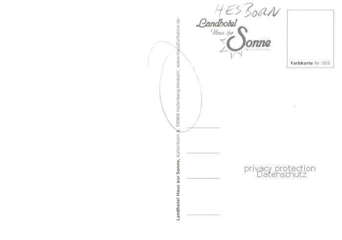 73786977 Hesborn Hallenberg Landhotel Haus zur Sonne postalisch nicht gelaufen Erhaltung siehe scans [FriedD77] KatCode: 11110005958020